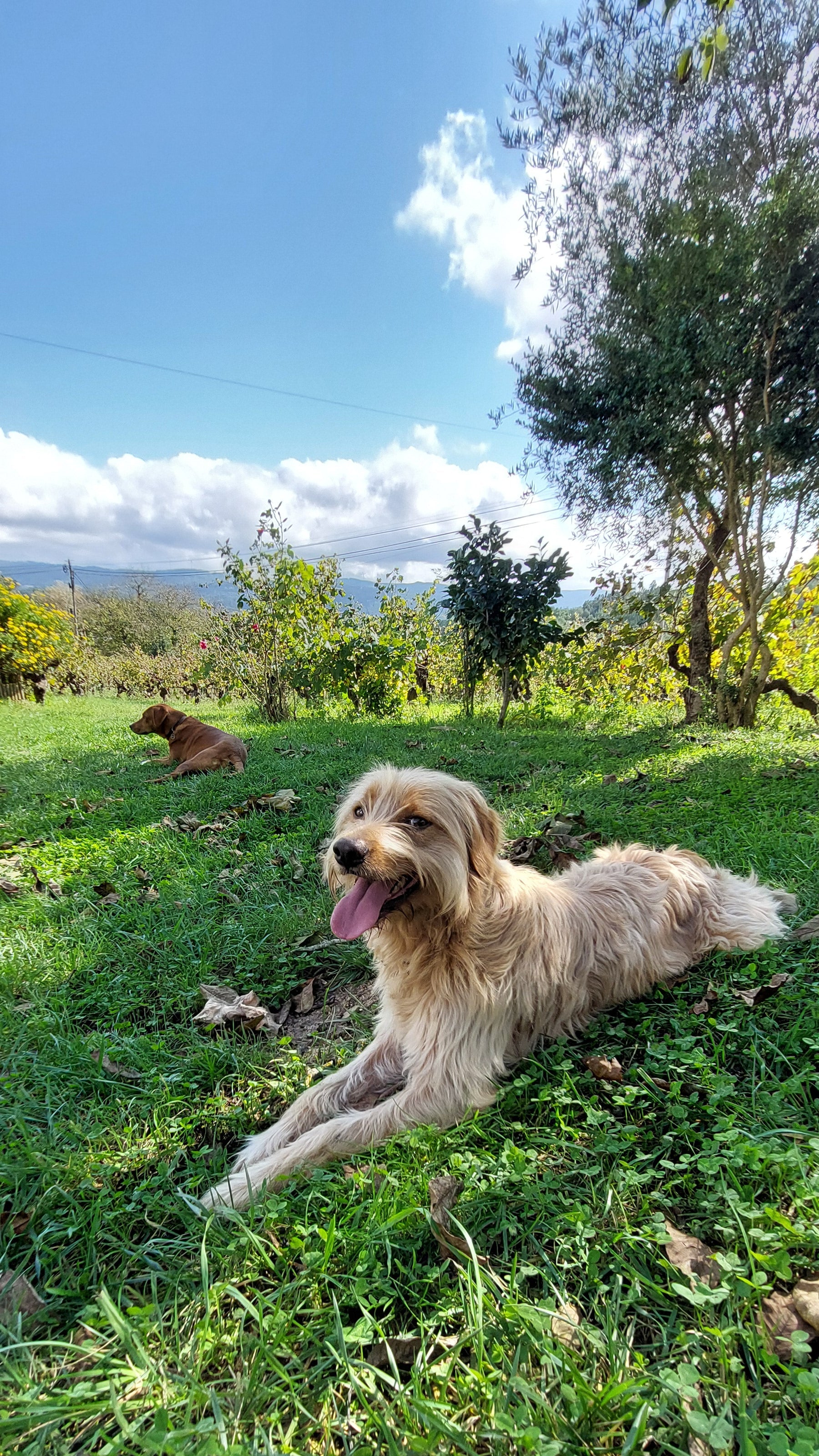 A cobertura vegetal permanente ajuda a proteger o solo da erosão, aumenta a biodiversidade e cria um ecossistema mais estável. Aliada à presença de animais, que contribuem para a limpeza e aeração naturais, conseguimos minimizar a intervenção mecânica e química, fortalecendo a vitalidade do solo e a saúde geral da vinha.